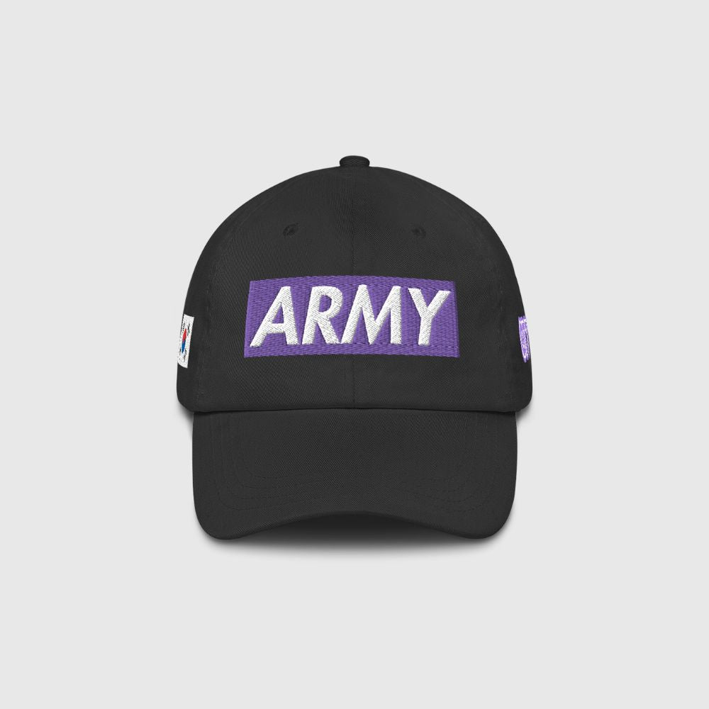 • Embroidered purple ARMY logo by Ausenseiter on the front.